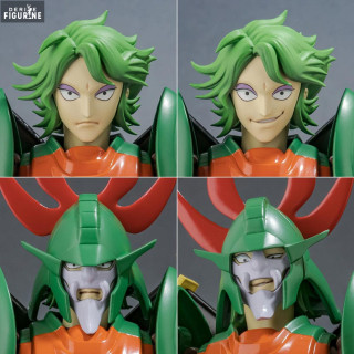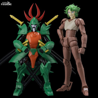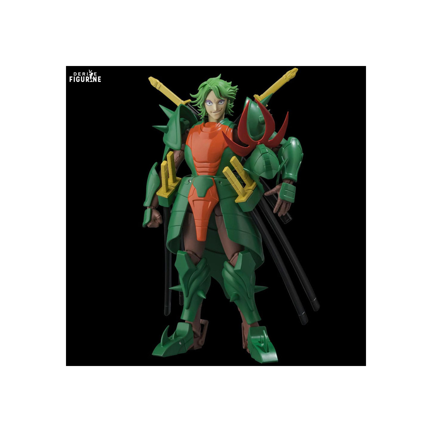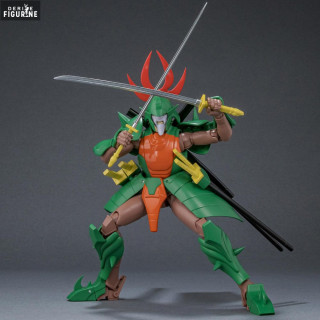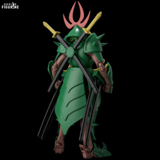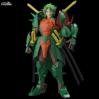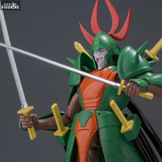 The figure showcases Naaza in all his glory, featuring his intricately designed green armor with metallic finishes and a set of weapons carefully recreated to capture the essence of this warrior. The articulation allows for dynamic posing, perfect for combat scenes. The vibrant colors of the armor and accessories, such as his swords, enhance the overall precision and aesthetic of the figure. Whether for collectors or fans of the series, this piece is a perfect homage to the rich and fascinating world of Ronin Warriors.
