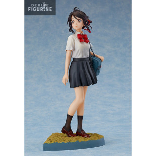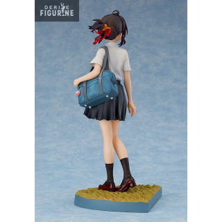 Official PVC figure of Mitsuha Miyamizu about 20 centimeters high to scale 1/8. This is the female protagonist of the hit movie Your Name. The figurine is signed by Good Smile Company. The last picture shows the diorama with Taki Tachibana but beware, this figurine is sold separately.