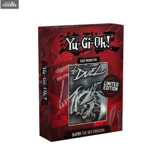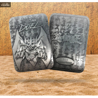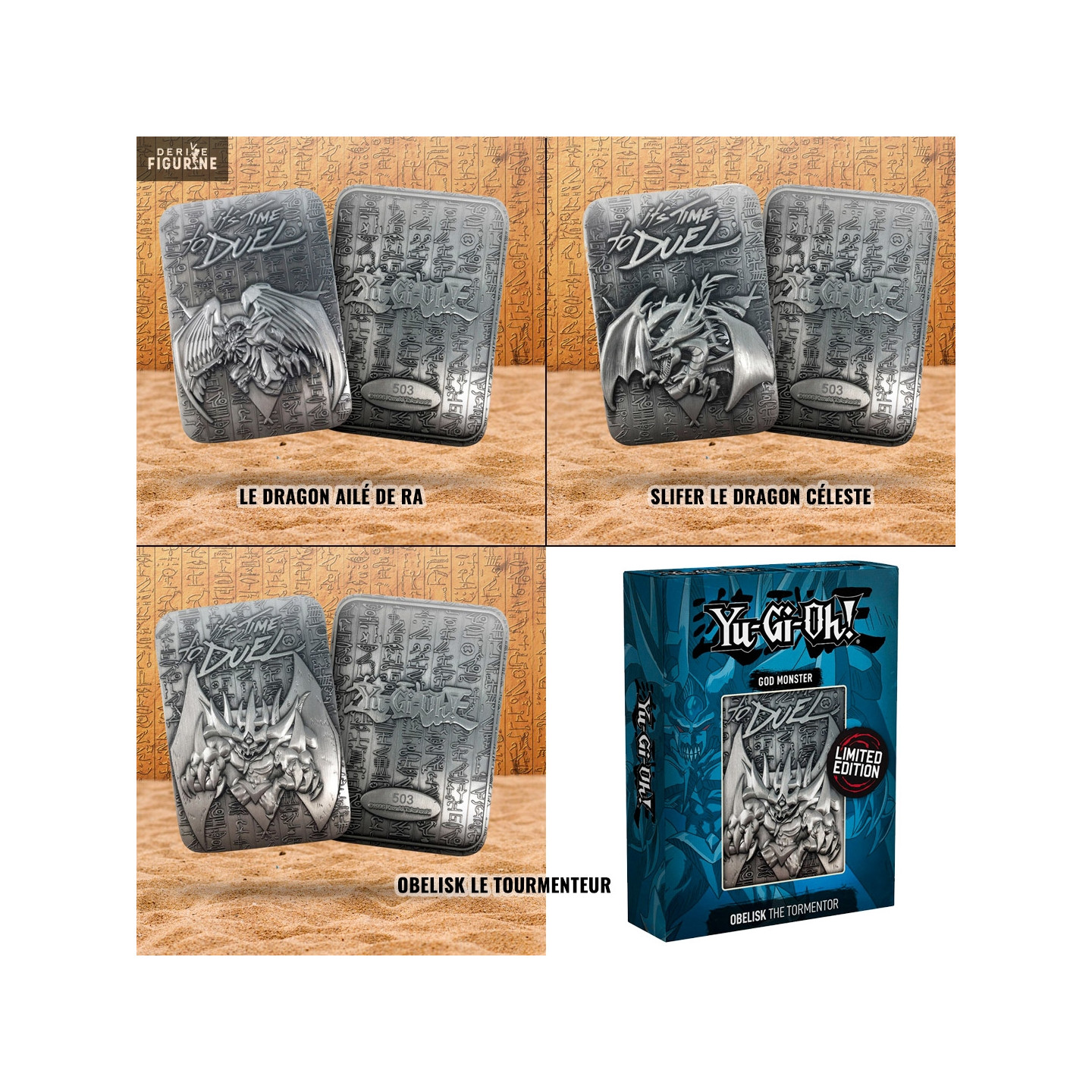 Official replica of your choice of God Card Slifer the Sky Dragon, Winged Dragon of Ra ou Obelisk the Tormentor in metal measuring about 7,5 x 5 centimeters. The manufacturer is FaNaTtiK.