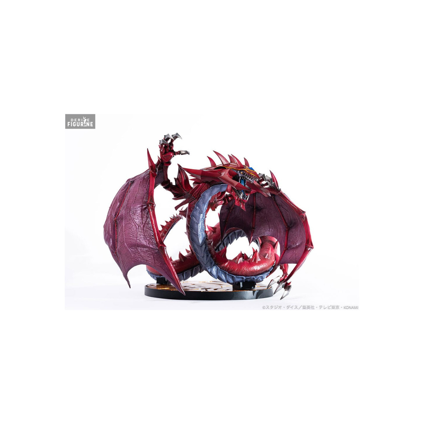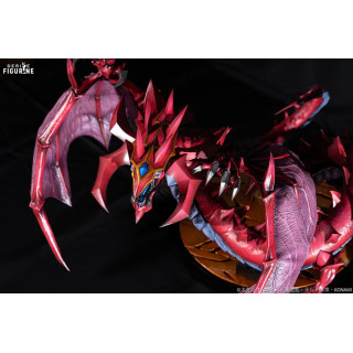 Standing at approximately 50 cm in length and 44 cm tall, this piece is a commanding centerpiece. It comes with a black base etched with golden inscriptions, enhancing its divine presence. An unmissable treasure for collectors and Yu-Gi-Oh! fans alike!