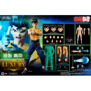 Official figure of Yusuke Urameshi, Luxury Version in PVC which measures approximately 30 centimeters high, scale 1/6. The manufacturer is Asmus Collectible Toys.