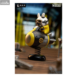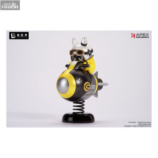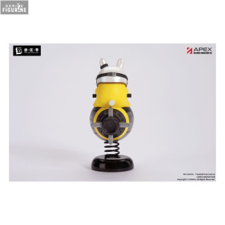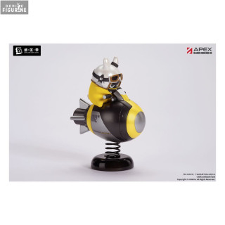 This official Rocketboo figure, part of the Happy Shake collection and produced by Apex Innovation, perfectly captures the dynamic personality of this unique character. Standing 10 cm tall and made of PVC, it features Rocketboo riding a stylized black-and-yellow bomb, emblazoned with the Express logo, symbolizing its speed and unstoppable energy. Mounted on a spring-loaded base, this interactive figure adds a fun motion effect that enhances its lively and expressive nature.