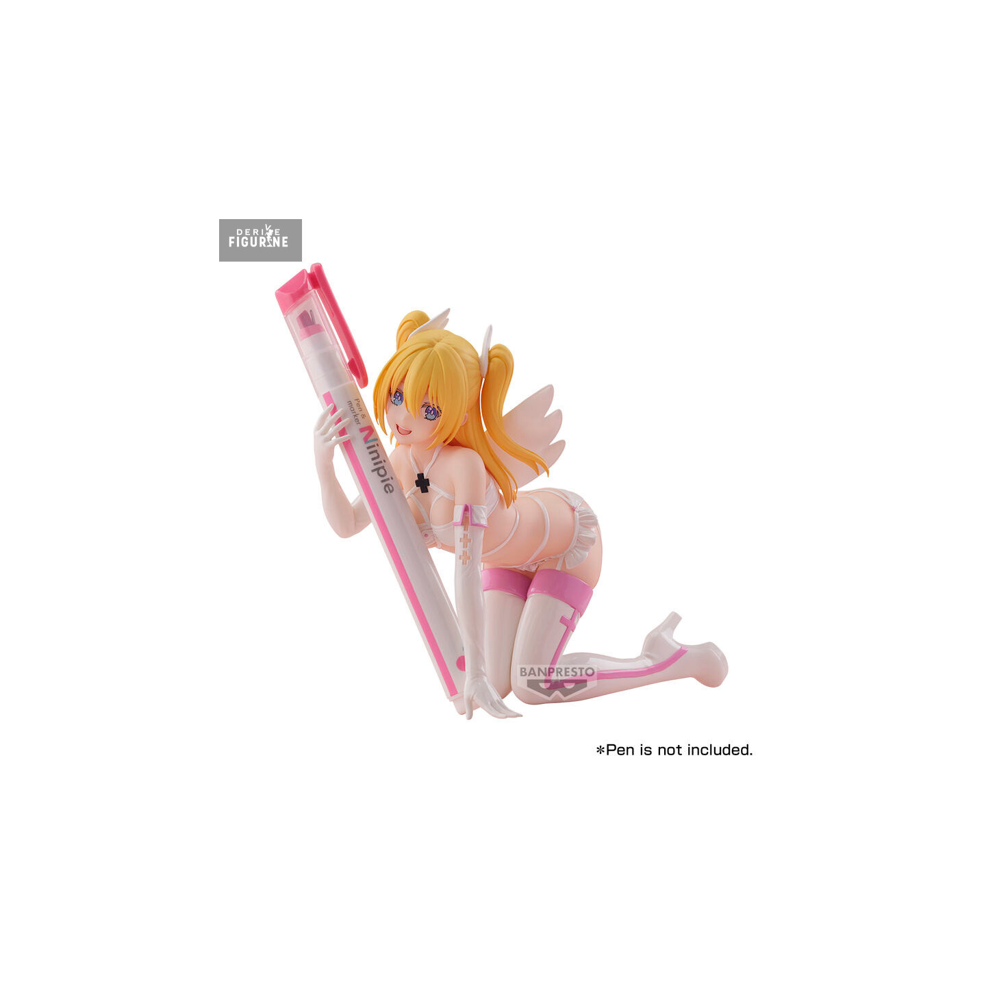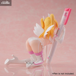 La figurine de Amano Ririsa, Liliel Medical Corps, de la collection PenLife! par Banpresto, est un excellent exemple de l'attention aux détails et de la qualité de fabrication. Mesurant environ 12 centimètres de haut, cette figurine présente Ririsa dans une pose accroupie, tenant un stylo géant, avec une expression malicieuse et un sourire enjoué. Sa tenue, qui combine des éléments de lingerie blanche avec des accessoires roses et des ailes d'ange, est minutieusement sculptée pour capturer les textures et les détails. Les finitions sont impeccables, des plis de sa tenue à la finesse de ses ailes, ce qui en fait une pièce de collection remarquable pour les fans de la série et les amateurs de figurines stylisées.