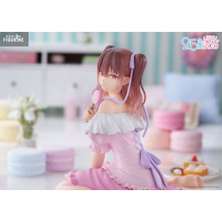 Dans cette version, Mikari est représentée assise au sol dans une pose détendue, habillée d’une robe de nuit rose tendre à volants blancs, avec une sucette à la main et un regard doux légèrement mélancolique. Les détails de la scène — coussins, pâtisseries, tons pastel — créent une ambiance sucrée et réconfortante, comme une pause gourmande dans une journée calme. Ses cheveux coiffés en couettes bicolores (brun et rose) accentuent encore sa fraîcheur et sa personnalité pétillante.