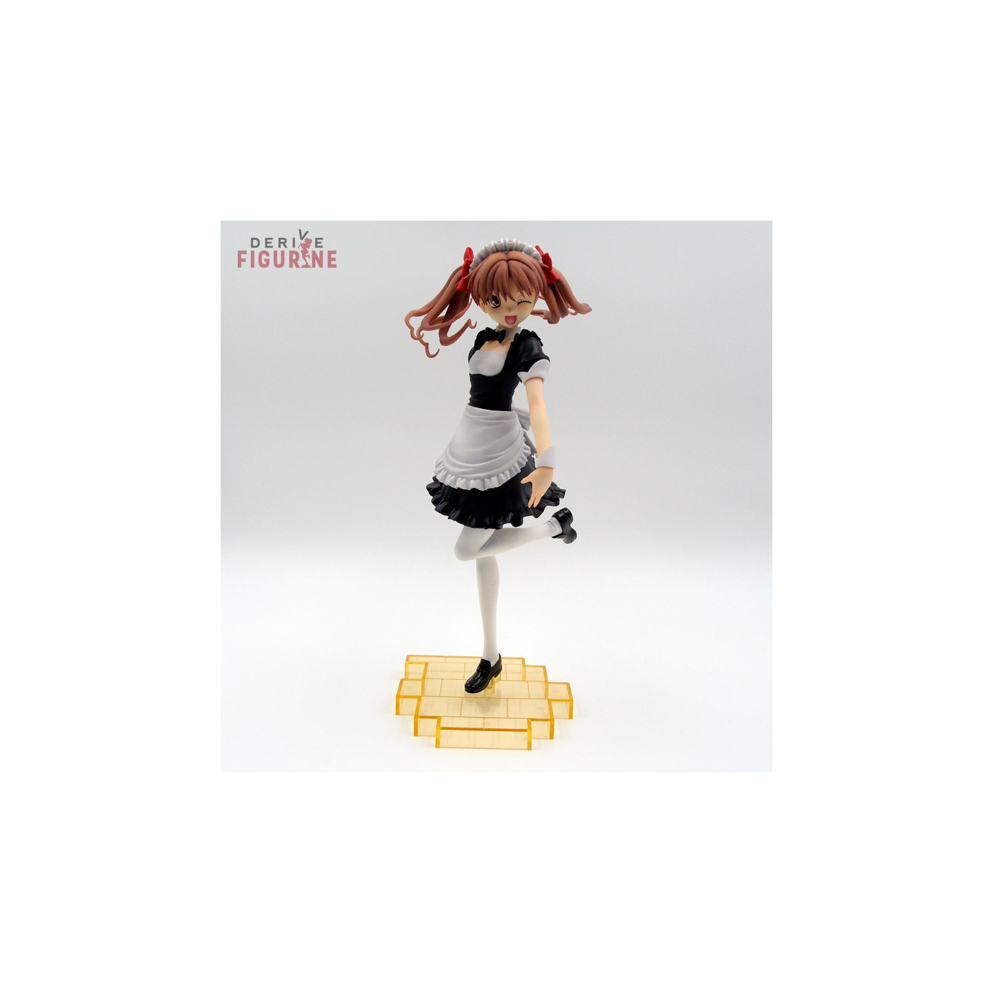 Figurine d'occasion et officielle de Shirai Kuroko en ABS/PVC d'environ 25 centimètres de haut à l'échelle 1/6. L'Esper Shirai Kuroko dans une adorable tenue de maid. Il s'agit d'un objet d'occasion en parfait état de la collection 4-Leaves. Le fabricant est Kotobukiya, vendu avec boîte en bon état.