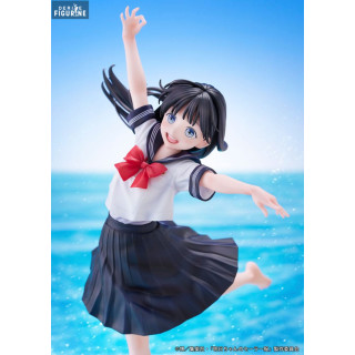 Le visage de Komichi, avec ses grands yeux expressifs et son sourire radieux, est sculpté avec une précision qui transmet sa personnalité pétillante. Ses cheveux noirs flottent derrière elle, ajoutant un sentiment de mouvement à la figurine. La base en forme d'éclaboussure d'eau bleue transparente ajoute une touche de fraîcheur et de dynamisme, évoquant les journées d'été insouciantes.