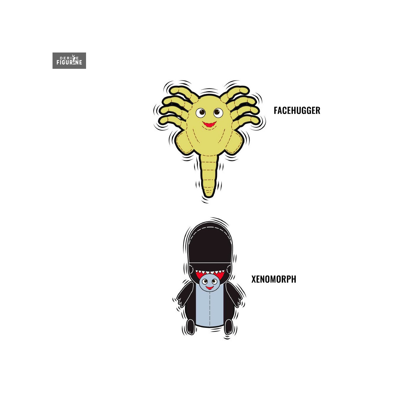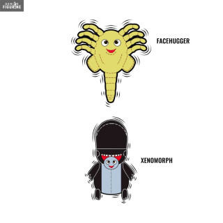Peluche officielle au choix entre Facehugger ou Xenomorph 100% polyester. Elle mesure environ 41 centimètres de haut. Le fabricant est Kidrobot. Dispose de vibration et nécessite 3 piles AA non fournies.