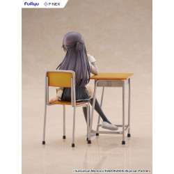 Mesurant environ 17,5 cm à l’échelle 1/7, cette pièce en PVC présente de jolies finitions : couleurs douces, plis naturels de la tenue, détails précis du bureau métallique et expression délicatement peinte. Le tout compose une mise en scène calme, idéale pour une exposition élégante.