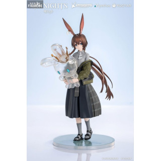 Un des aspects les plus remarquables de cette figurine est le soin apporté aux détails. Le visage d'Amiya est expressif, avec ses grands yeux bleus et son sourire délicat, reflétant sa personnalité douce mais résolue. Les plis de sa tenue, les textures et les accessoires, comme le petit lapin en peluche transparent qu'elle tient dans ses bras, sont minutieusement réalisés, offrant une qualité visuelle exceptionnelle.