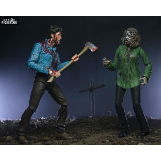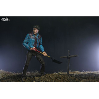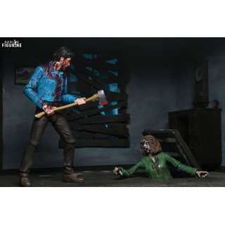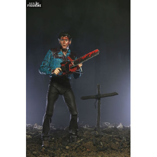Fabriquées par NECA et issues de la collection Ultimate, ces figurines mesurent environ 18 centimètres de hauteur. Chaque figurine est articulée, permettant de recréer les scènes les plus intenses et mémorables du film. La figurine de Bloody Ash est vêtue de sa chemise bleu emblématique, maintenant tâchée de sang, avec une expression faciale de détermination mêlée d'horreur, fidèle à son combat contre les Deadites. Les accessoires inclus pour Ash, tels que la tronçonneuse ensanglantée, la pelle, la hache, et des mains interchangeables, permettent de personnaliser les poses et les situations.