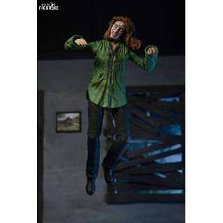 La figurine de Cheryl Williams capture parfaitement son apparence terrifiante après sa possession. Son visage déformé par la démence et le mal est reproduit avec des détails minutieux, et sa tenue verte déchirée ajoute une touche authentique à son aspect monstrueux. Cheryl est accompagnée d'accessoires comme des têtes interchangeables, un livre des morts miniature, et divers autres éléments qui permettent de recréer ses scènes effrayantes.