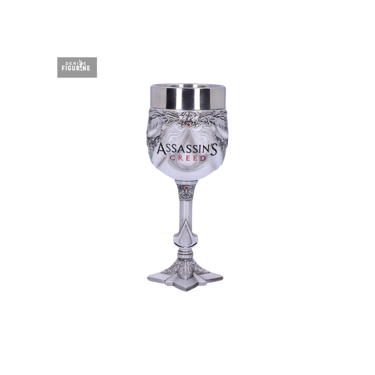 Calice officiel du logo Assassin's Creed en résine/acier inoxydable mesurant environ 18 centimètres de haut. Le fabricant est Nemesis Now. Ne pas mettre au lave-vaisselle.