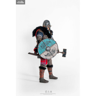 Eivor Varinsdóttir est le personnage que vous incarnez dans Assassin's Creed Valhalla, qui peut être soit une femme ou un homme, et ici c'est donc l'homme que vous avez. Ce guerrier viking était à la tête du raid pour la conquête de l'Angleterre et il a pris des armes pour se défendre. Il a aussi plusieurs parties interchangeables et des vêtements en tissu pour plus de réalisme.