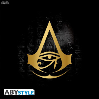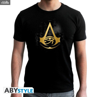 Si vous aimez la série des Assassin's Creed et plus particulièrement l'opus Origins, voici un t-shirt qui devrait vous plaire. Il reprend l'emblème des Assassins en couleur dorée et avec des hiéroglyphes en fond.