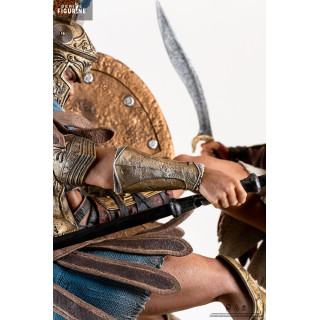 Figurine officielle de Spartan Kick, Alexios Diorama en résine mesurant environ 37 x 24 x 40 centimètres, à l'échelle 1/6. Le fabricant est Pure Arts.