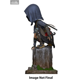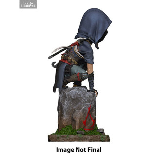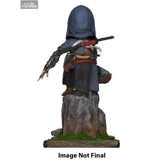 Cette figurine Naoe - Head Knocker, fabriquée par NECA, est conçue en résine et mesure environ 18 centimètres de haut. Elle présente Naoe en position accroupie, prête à bondir depuis un rocher marqué du symbole des Assassins. Son design détaillé met en avant son costume sombre et son masque de ninja, soulignant son apparence furtive et menaçante. La sculpture raffinée et la finition soignée en font une pièce de collection incontournable pour les fans d’Assassin’s Creed et de figurines de qualité.