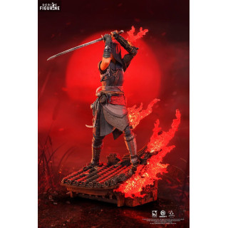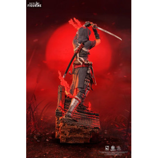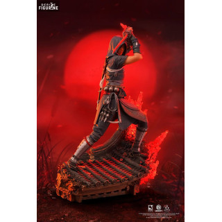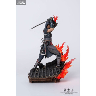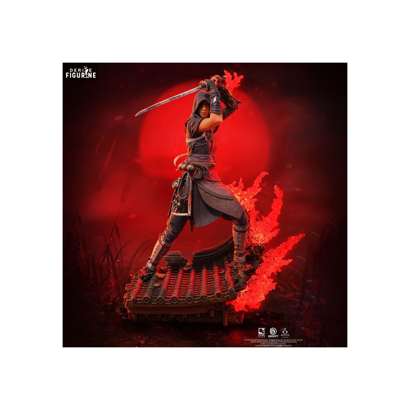 Figurine officielle de Animus Naoe en PVC mesurant environ 28 centimètres de haut, à l'échelle 1/8. Le fabricant est Pure Arts.
