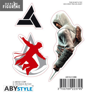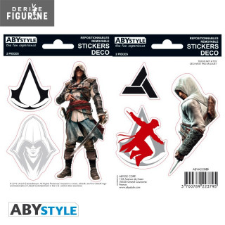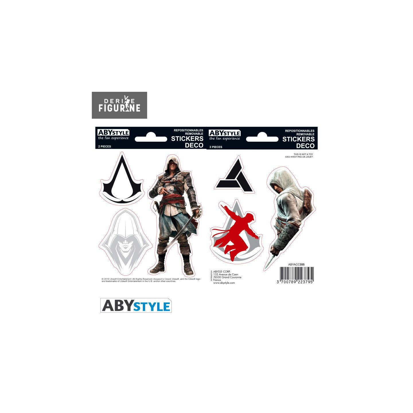 Mini stickers repositionnables d’Assassin’s Creed comprenant deux planches qui mesurent 16x11 centimètres. Elles contiennent six éléments prédécoupés en vinyle transparent 100µ. Le fabricant est ABYstyle.