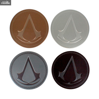 Pack de quatre dessous de verre Assassins Creed en métal. Le fabricant est Paladone.