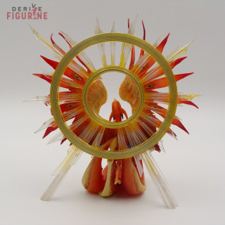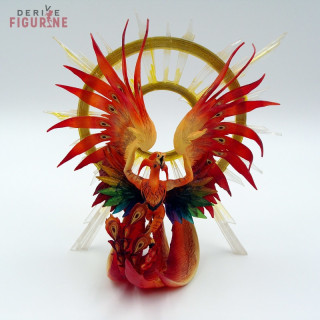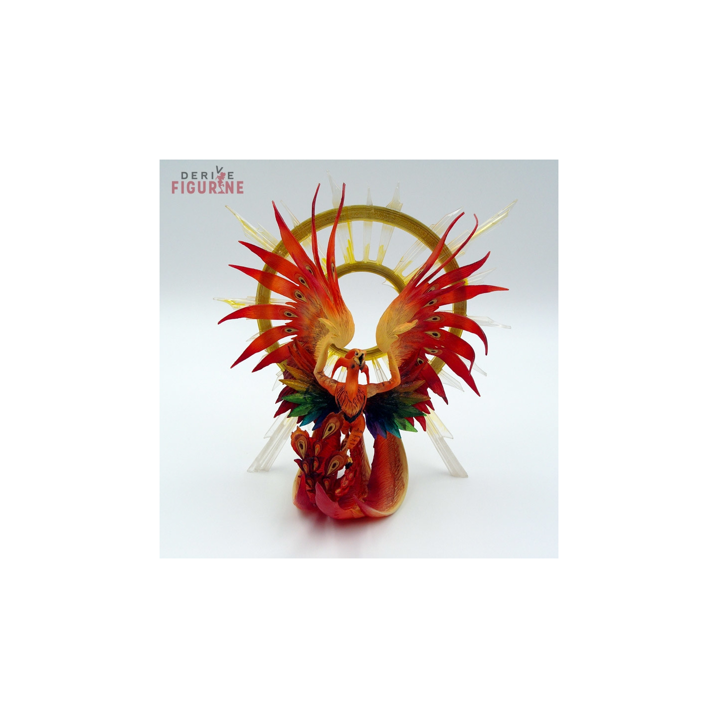 Figurine d'occasion et officielle du Phoenix en PVC d'environ 17 centimètres de haut. Une aura lumineuse se trouve derrière le Phoenix. Il s'agit d'un objet d'occasion en parfait état de la collection Master Creatures. Le fabricant est Square Enix, vendu avec boîte en bon état mais décollée à l'arrière.