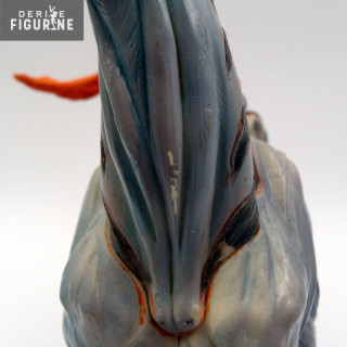 Figurine d'occasion et officielle de Sleipnir en PVC d'environ 23,5 centimètres de haut. Les muscles saillants et les dents pleines de sang, mieux vaut se tenir loin de Sleipnir. Il s'agit d'un objet d'occasion en assez bon état avec quelques manques de peinture dû à l'usure. Le fabricant est Kotobukiya, vendu sans boîte.