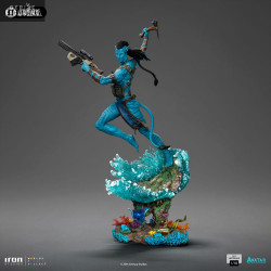 Figurine officielle de Jake Sully en résine mesurant environ 48 x 24 x 19 centimètres, à l'échelle 1/10. Elle est issue de la collection BDS Art Scale. Le fabricant est Iron Studios.