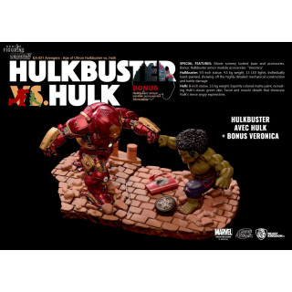 Dans l’Ère d'Ultron, on peut dire que Bruce Banner perd le contrôle de Hulk et s'en suit un affrontement de taille entre Tony Stark dans l'armure Hulkbuster et lui. Cette scène mythique est immortalisée avec cette figurine. voici les possibilités qui s'offrent à vous :