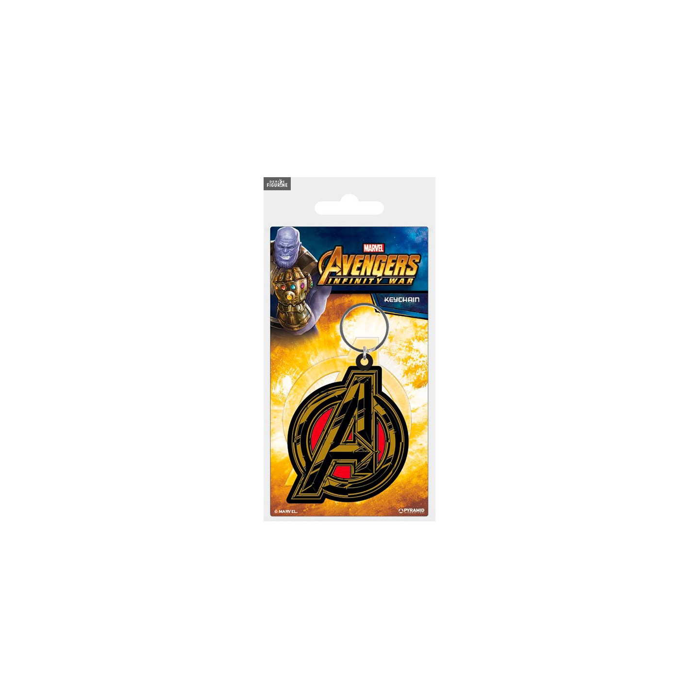 Porte-clés officiel de Marvel Avengers Infinity War Symbol en caoutchouc mesurant environ 4,5x6 centimètres. Le fabricant est Pyramid International.