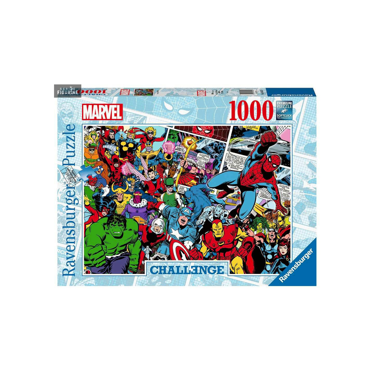 Puzzle officiel de Marvel de 1 000 pièces mesurant environ 70 x 50 centimètres de haut. Le fabricant est Ravensburger.
