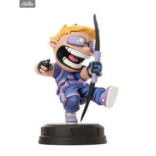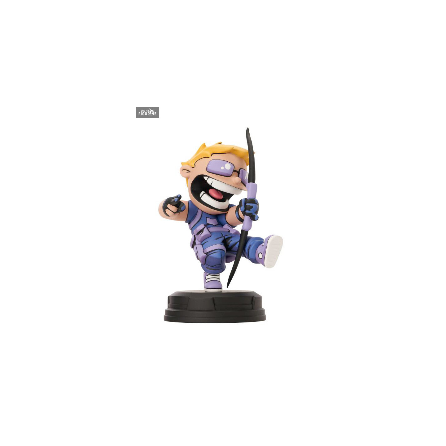 Figurine officielle de Hawkeye mesurant environ 12 centimètres de haut. Le fabricant est Diamond Select Toys.