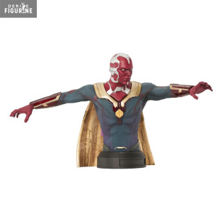 Buste officiel de Vision en résine mesurant environ 15 centimètres de haut, à l'échelle 1/6. Le fabricant est Diamond Select Toys.
