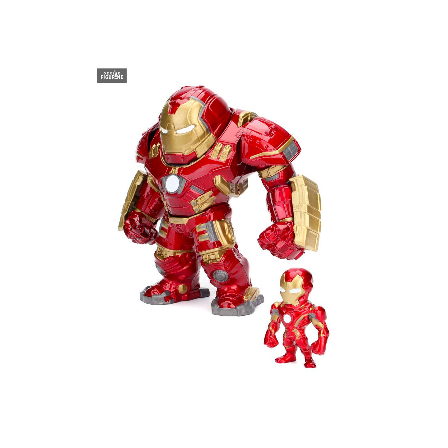 Pack figurines officielles du Hulkbuster (15 cm) et Iron Man (6 cm) en métal Die cast. Le fabricant est Jada Toys.