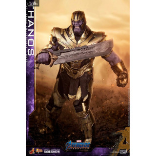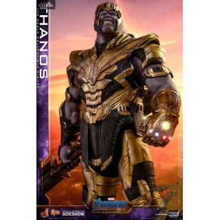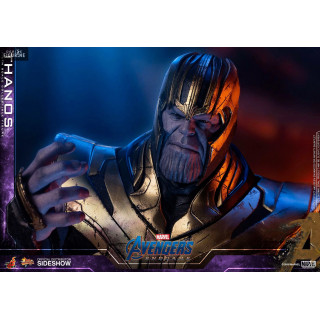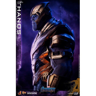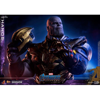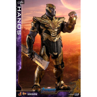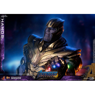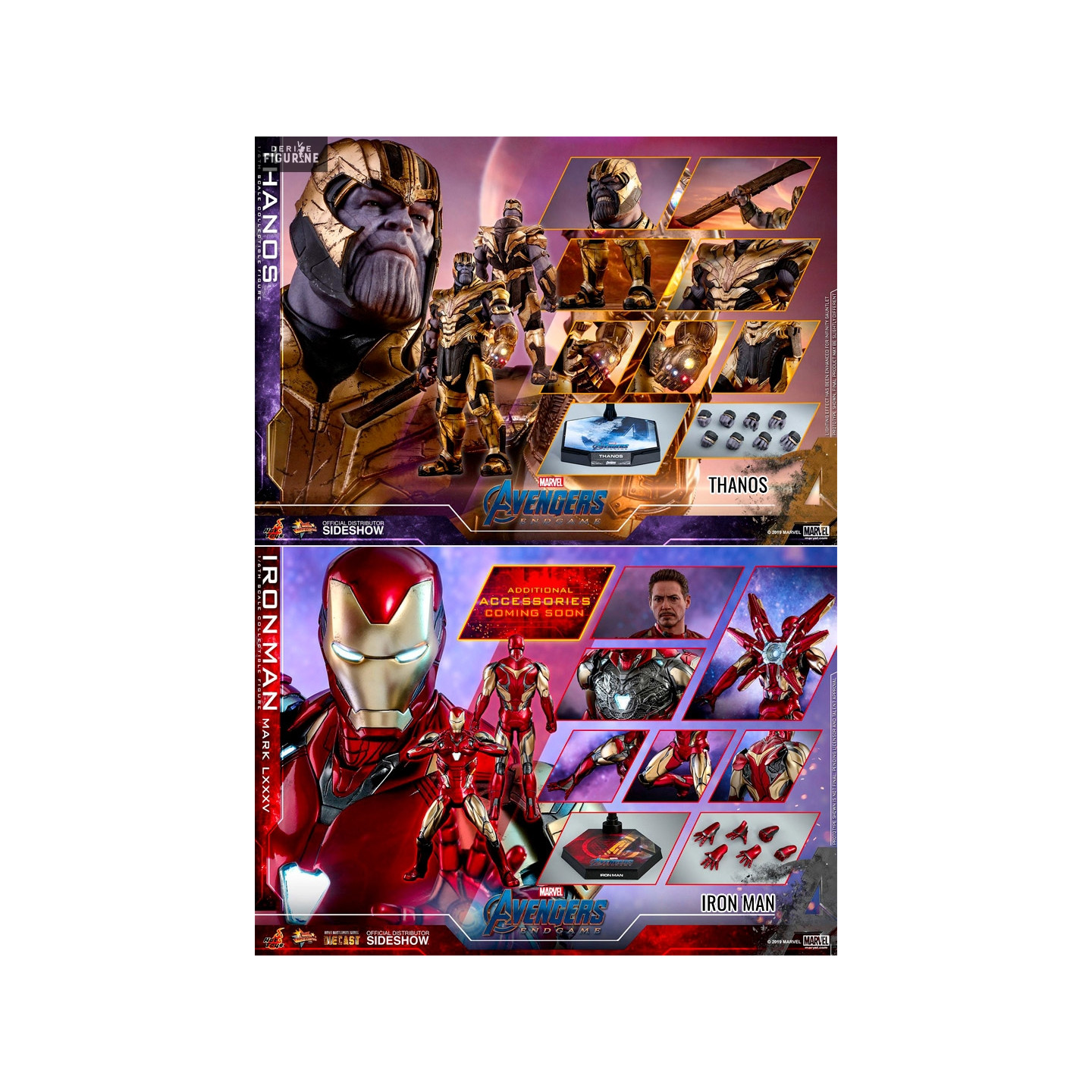 Figurine officielle au choix de Thanos (42 cm) ou Iron Man Mark LXXXV (32 cm) à l'échelle 1/6. Le fabricant est Sideshow Collectibles.