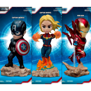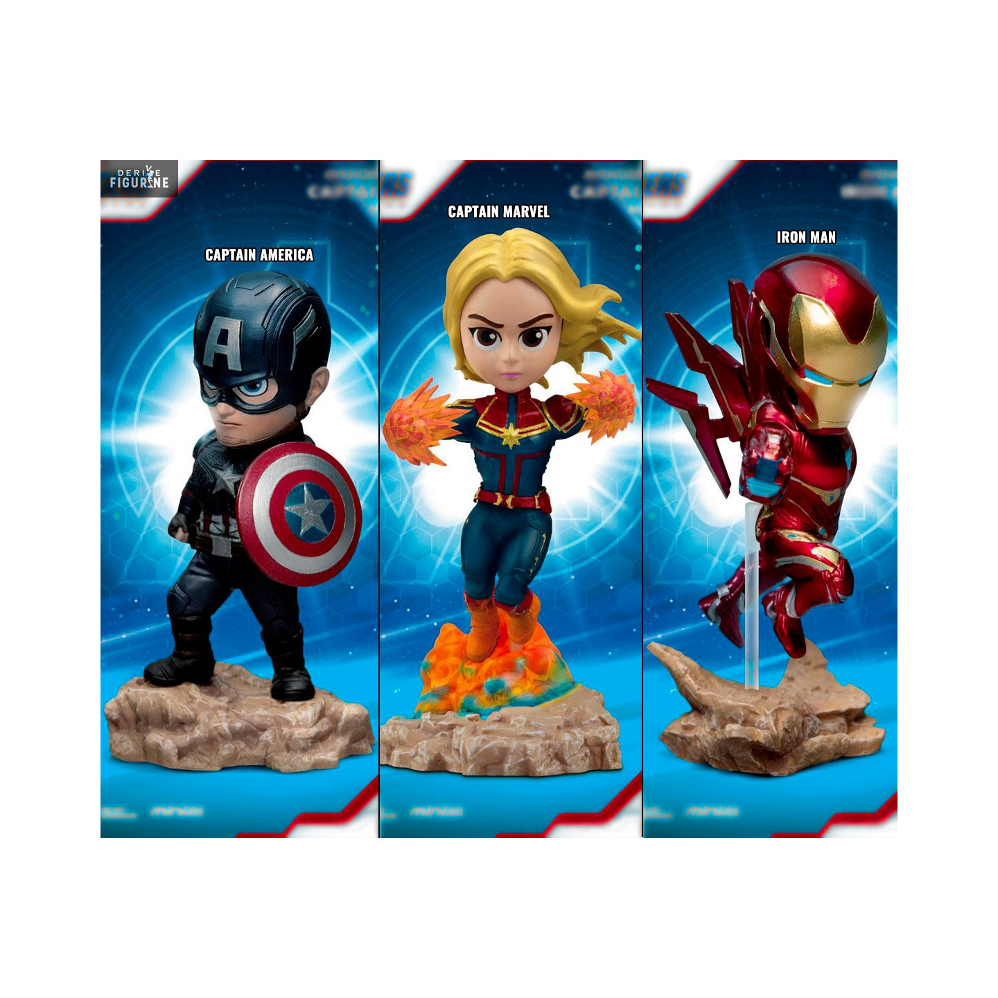 Figurine officielle au choix entre Captain Marvel (~10 cm), Iron Man (~10 cm) ou Captain America (~7 cm) en PVC. Elle est issue de la collection Mini Egg Attack. Le fabricant est Beast Kingdom.