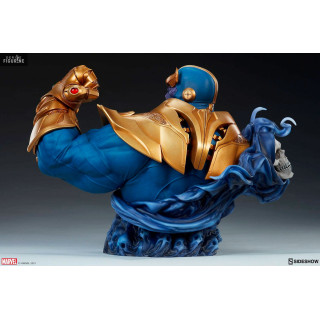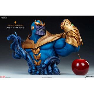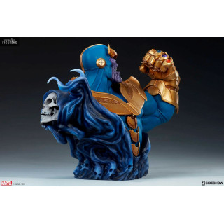 Buste officiel de Thanos en résine mesurant environ 27x18x35 centimètres. Le fabricant est Sideshow Collectibles.