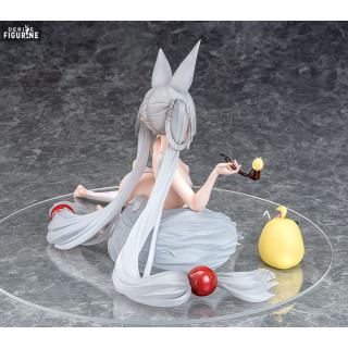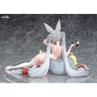 Parmi ces personnages, Asanagi, une destroyer de la flotte Sakura Empire, séduit par son allure douce et posée. Inspirée d’un véritable navire de guerre japonais, elle arbore habituellement une tenue traditionnelle évoquant son héritage impérial, mais cette figurine nous la présente dans une version estivale des plus envoûtantes. Allongée sur le sable, dans une pose détendue et sensuelle, Asanagi semble profiter d’un moment de calme en bord de mer. Son bikini blanc translucide et ses bas immaculés contrastent délicatement avec sa chevelure argentée et son regard perçant, apportant à cette figurine un charme irrésistible.