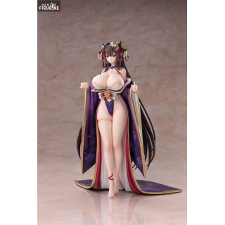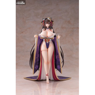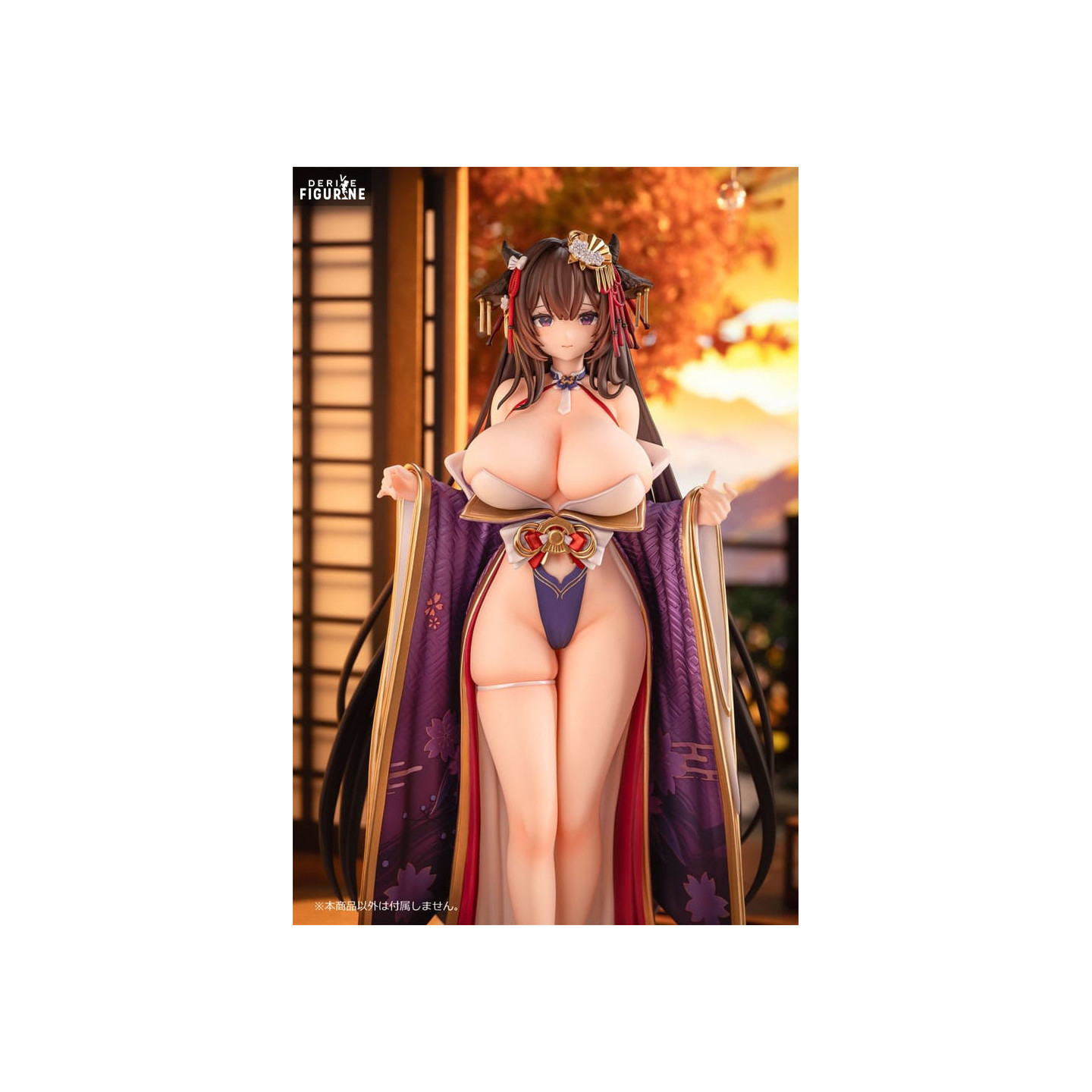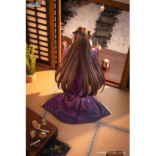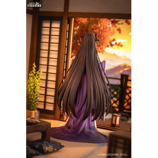 La figurine "Robust Floral Strings" présente Kashino dans une pose gracieuse et confiante. Vêtue d'un magnifique kimono violet orné de motifs floraux, elle dégage une aura de sérénité et de noblesse. Le kimono est ouvert sur le devant, révélant une tenue plus légère et sensuelle qui met en valeur sa silhouette élancée. Les détails des motifs floraux et les bordures dorées ajoutent une touche de luxe et de sophistication à l'ensemble.