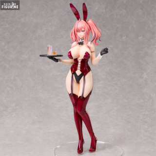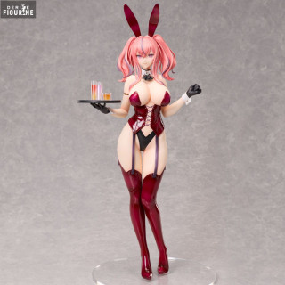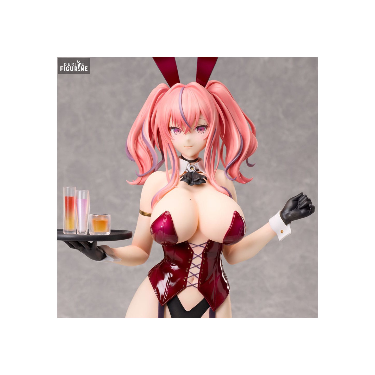 La figurine Bremerton - Anniversary Bunny présente le personnage dans une tenue de bunny girl sophistiquée, avec une combinaison rouge brillante et des oreilles de lapin assorties. Les cheveux roses de Bremerton sont coiffés en deux queues de cheval, ajoutant une touche de douceur et de charme à son apparence glamour. Le corset ajusté met en valeur sa silhouette, tandis que les bas et les talons hauts complètent son look élégant.