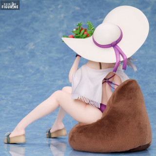 L'attention aux détails dans cette figurine est remarquable. De la texture réaliste du chapeau et du pouf aux nuances subtiles de sa tenue de bain, chaque aspect est conçu pour refléter la qualité et le soin apporté à sa création. La position assise de Reno, avec sa jambe élégamment croisée et sa main tenant délicatement le chapeau, ajoute une dimension de calme et de sérénité à l'ensemble, tout en mettant en valeur sa silhouette élancée et féminine.
