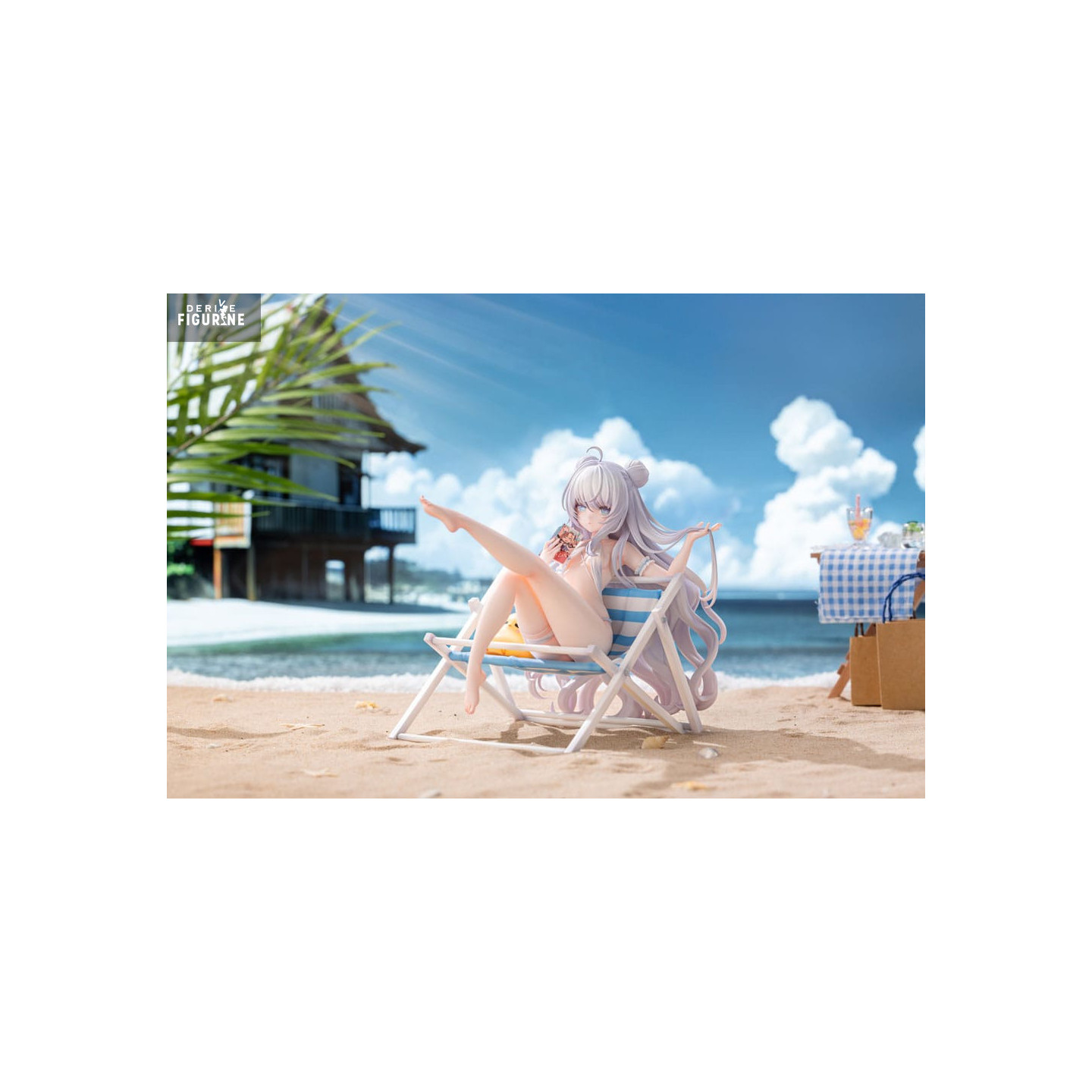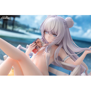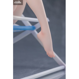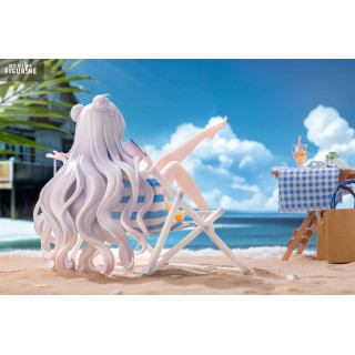 Voici la figurine officielle de Le Malin, personnage emblématique du jeu vidéo Azur Lane, dans sa version "Mercredi at the Secret Base". Le Malin, un navire de classe destroyer de la flotte française, est représentée ici dans une pose décontractée, assise sur une chaise longue, profitant d'un moment de détente au soleil. Son expression douce et sereine, ainsi que les détails de son maillot de bain et de ses longs cheveux argentés flottant autour d'elle, capturent parfaitement son caractère charmant et mystérieux.