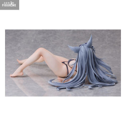 La figurine affiche un design soigné et fidèle : maillot de bain deux pièces noir aux lignes simples mais ajustées, oreilles félines sombres ornées de fleurs bleues, et une chevelure bleu-gris fluide qui se déploie en mèches longues et ondulées autour d’elle. Chaque mèche, chaque pli du tissu est travaillé pour épouser sa posture naturelle et détendue.