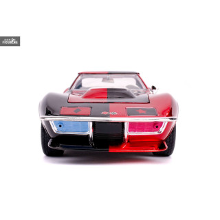 Si vous aimez les belles cylindrées et les figurines, vous allez pouvoir combler deux de vos passions. Vous avez donc un pack qui contient non seulement une figurine, mais aussi une réplique miniature d'une belle voiture. Il y a donc le choix entre Harley Quinn et sa Chevy Corvette Stingray de 1969, ou le Joker et la même voiture, mais de 2009.