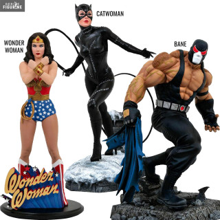 Figurine officielle au choix entre Bane, Catwoman Batman Returns ou Wonder Woman Linda Carter en PVC mesurant environ 23 centimètres de haut. Elle est issue de la collection Gallery. Le fabricant est Diamond Select Toys.