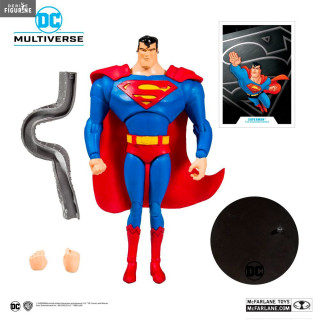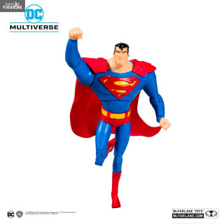 Figurine officielle au choix entre Batman ou Superman mesurant environ 18 centimètres de haut. Le fabricant est McFarlane Toys.