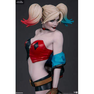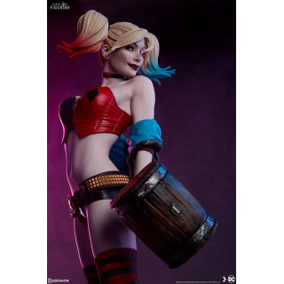 Figurine officielle de Harley Quinn en résine mesurant environ 51 x 20 x 20 centimètres. Le fabricant est Sideshow Collectibles.