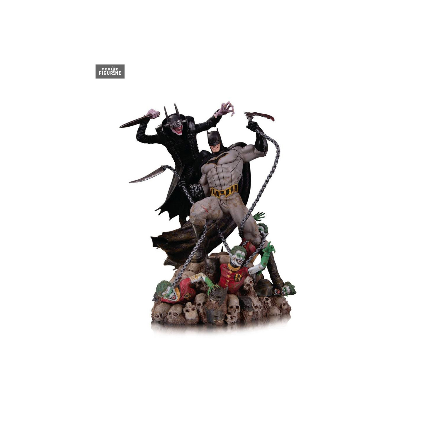 Le justicier de Gotham City de DC Comics Batman affronte dans cette statuette de type Diorama son ennemi le Batman Who Laughs. Limitée à seulement 5 000 exemplaires dans le monde, cette figurine de la gamme des Battle est très détaillée et montre même les Robin revenant d'entre les morts avec des visages similaires à ceux du Joker...