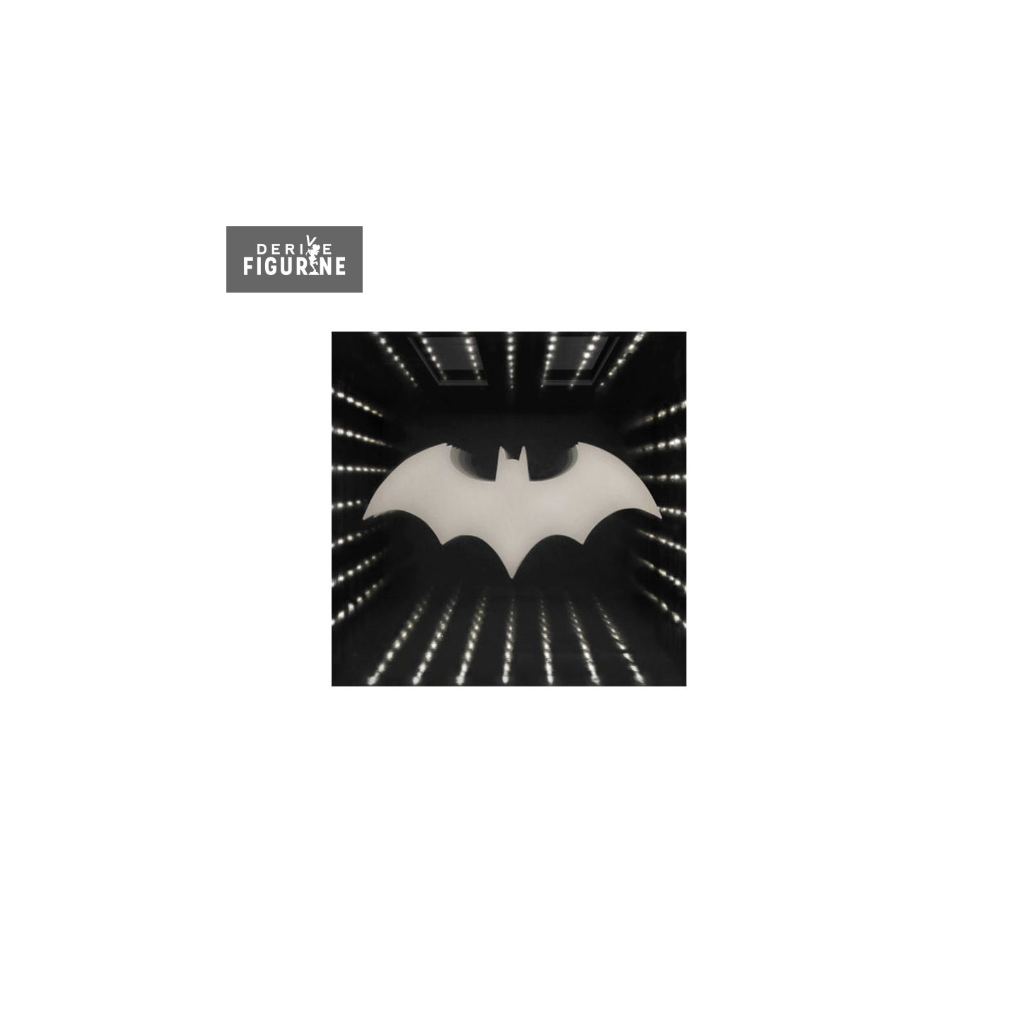 Cette lampe possède deux fonctions. La première, lorsqu'elle est éteinte elle ressemble à miroir, tandis qu'une fois allumée, on a l'impression que la chauve-souris, logo de Batman apparaît à l'infini. Il est même possible de l'accrocher au mur.