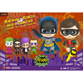 Figurines officielles de Batman, Robin and Villains mesurant environ 11 et 4 centimètres de haut. Elles sont issues de la collection Cosbaby. Le fabricant est Hot Toys.
