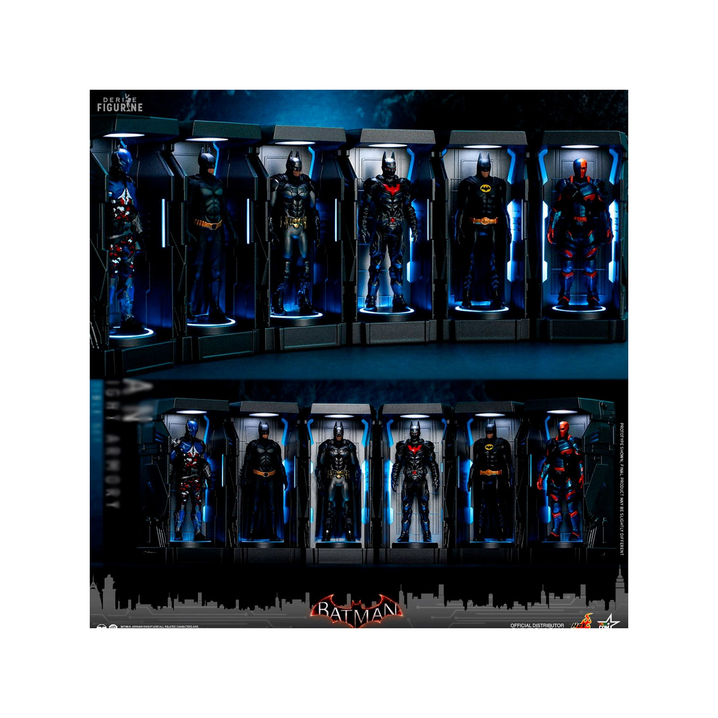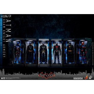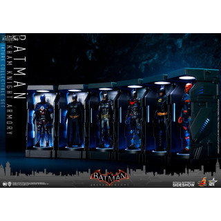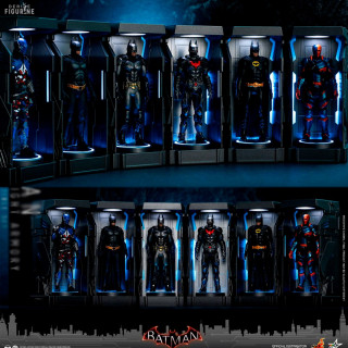 En provenance du jeu vidéo DC Comics Batman: Arkham Knight, ce pack vous permet de récréer la collection des armures du chevalier noir de Gotham City. On retrouve ainsi le Batman classique du jeu, celui de Beyond, celles des films de 1989 et 2008 mais aussi celles d'Arkham Knight et celle de Deathstroke. A noter que l'ensemble dispose de fonctions LEDs afin de donner vie au set.