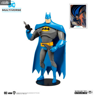 Avec ses 22 points d'articulations, le chevalier noir est prêt à venir faire régner la justice chez vous. Il est tiré de la série animée et possède donc une tenue grise et bleue. De plus, il ne vient pas les mains vides puisque qu'il a des mains de rechange, un batarang et un grappin, ainsi qu'une carte le représentant.